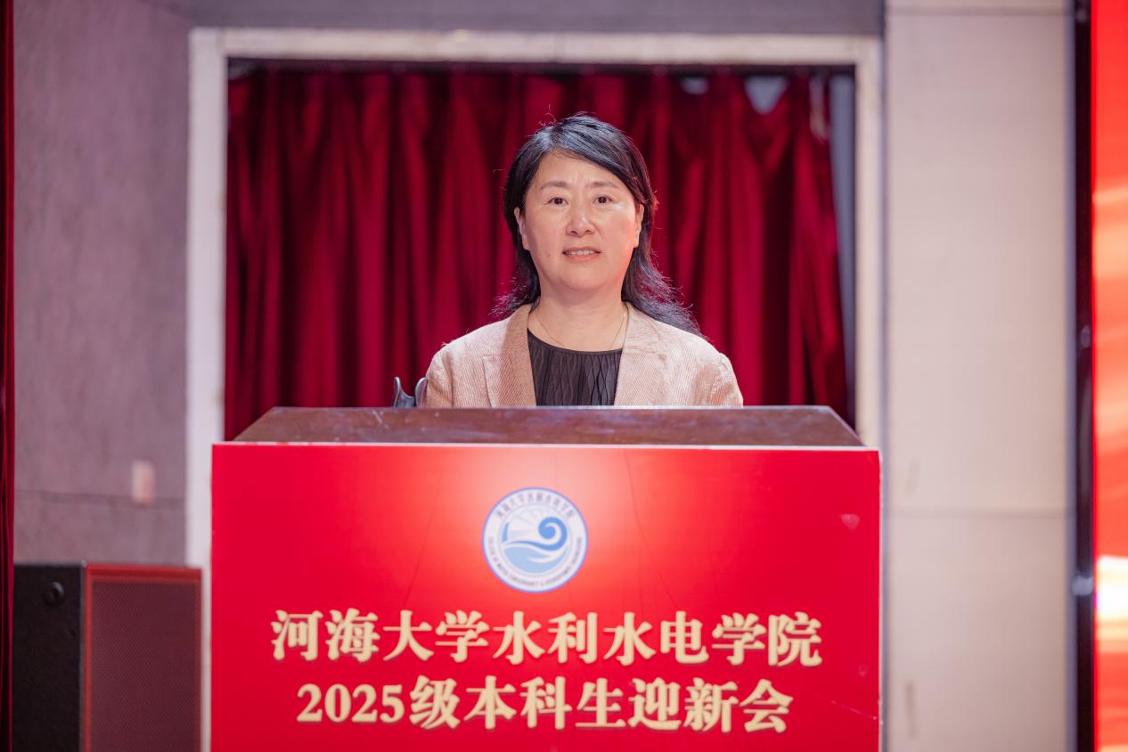 王媛院长对353名新生表示衷心祝贺和热烈欢迎。她从学院办学历史、人才培养、专业特色、系所设置和师资力量等方面进行介绍。王媛院长对2025级新生们提出三点期许:一是以心报国立大志,做胸怀天下的水利人;二是以水为镜明大德,做品格高尚的水利人; 三是以学为基成大才,做本领过硬的水利人。她勉励同学们牢记水电人的使命,以“艰苦朴素”为锚、“实事求是”为灯、“严格要求”为尺、“勇于探索”为剑,以山河为卷、以奋斗为笔,在实现民族复兴的崭新征程中,挥洒青春热血,书写新一代水电人的华章。