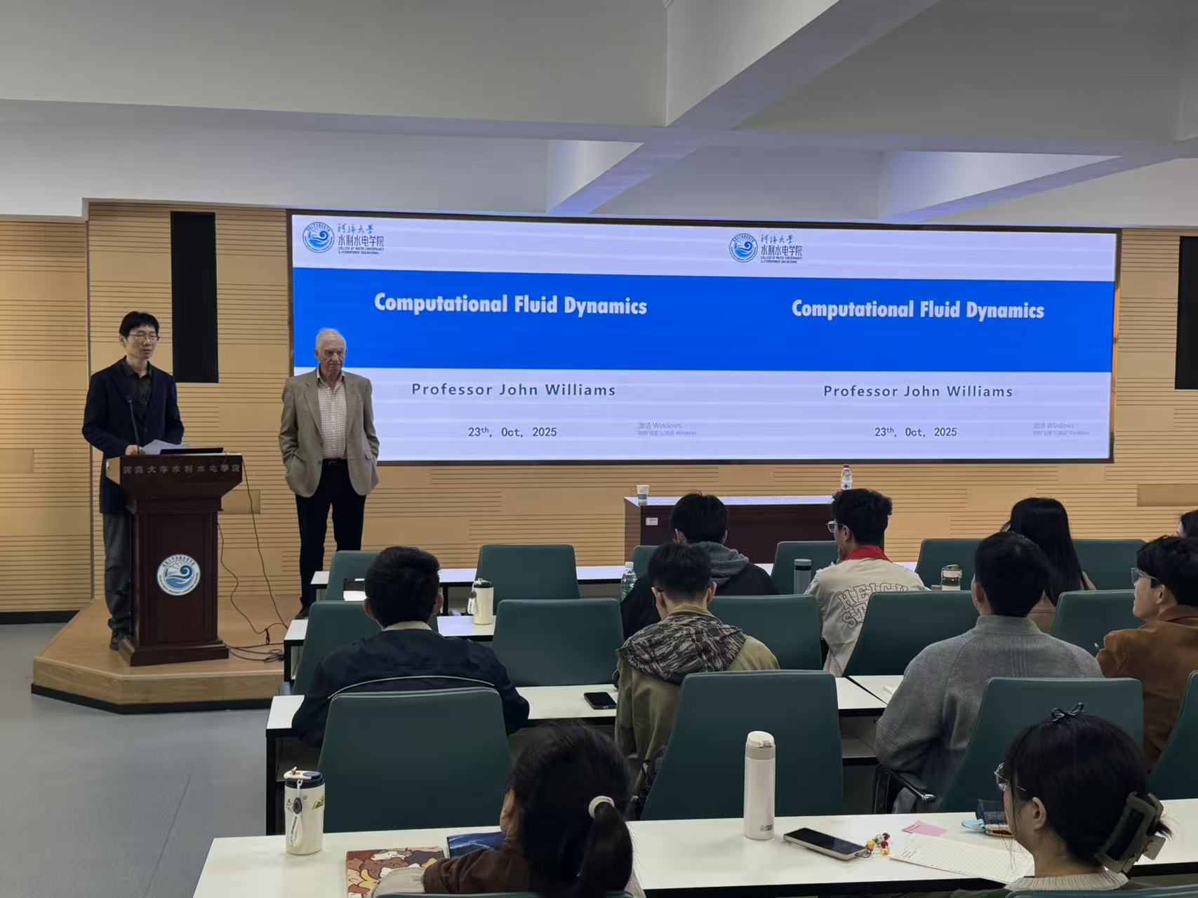 10月23日上午,英国伦敦大学玛丽皇后学院Williams教授应水利部水循环与水动力系统重点实验室邀请访问 高辣文 ,开展系列学术交流。报告会由高辣文 许栋教授主持, 高辣文 、港口海岸与近海工程学院、海洋学院、力学与材料学院相关老师和学生参加交流。Williams教授应邀做了题目为“Computational Fluid Dynamics: the Basics with Applications”的学术报告。报告会主要介绍了计算流体力学的基本原理,控制方程特征和数值求解方法,受到参会老师和同学的热烈欢迎。