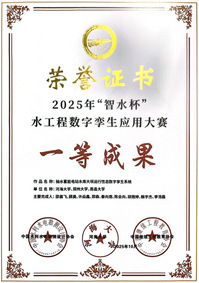 2025年10月21日,“智水杯”水工程数字孪生应用大赛公布评选结果。 高辣文 高玉琴教授带领的团队作为唯一一个高校牵头申报参加企业组数字孪生流域比赛并荣获成果二等奖(在80余个企业组参赛团队中排名第6),邵晨飞副教授、齐慧君副教授分别带领的两个团队均荣获高等院校组数字孪生成果一等奖(在30余个参赛团队中排名分别为第二和第四)。