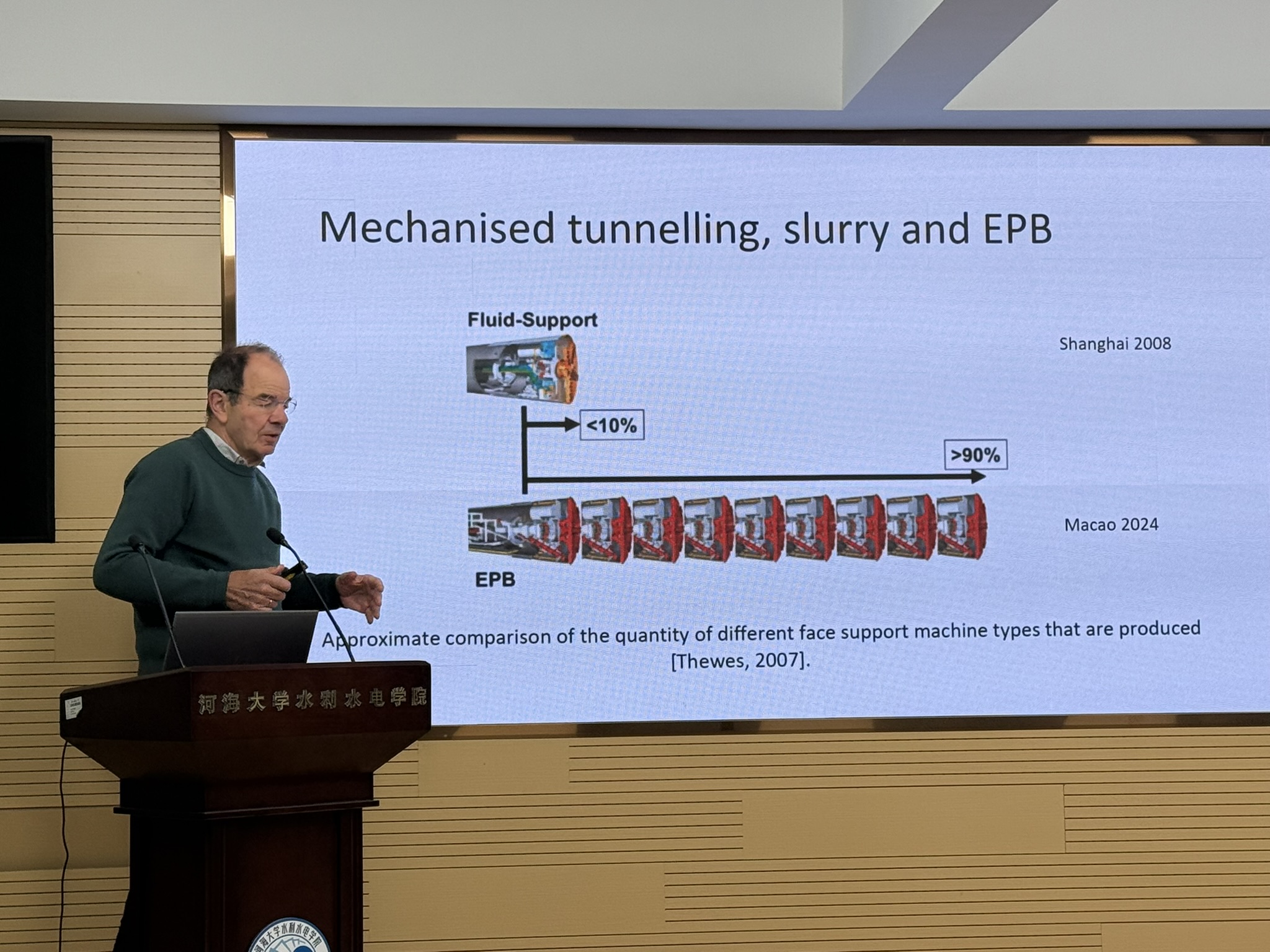 2025年11月19日上午,学院在水电馆301会议室成功举办学术研讨会。应王媛教授邀请,比利时根特大学Adam Bezuijen教授访问高辣文 ,并作了题为“砂土地层盾构掘进掌子面相互作用机制”的学术报告。本次报告旨在深化对复杂砂土地层中盾构掘进机理的认识,揭示“土体-盾构-地下水-泡沫”相互作用机制,为盾构掌子面精细化控制及施工安全风险防控提供科学依据和技术支撑。