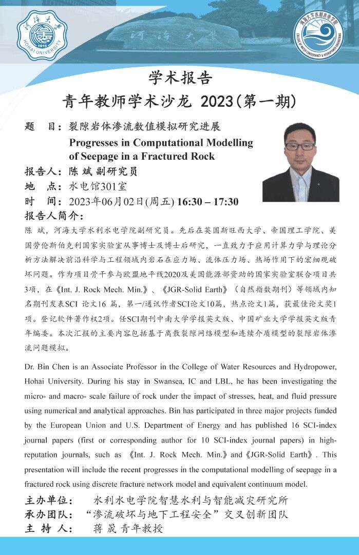 Academic Report Conference | Academic Salon for Young Teachers 2023 ( I ) Research Progress in Numerical Simulation of Seepage in Fractured Rock Mass