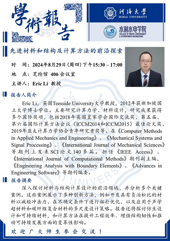 Academic report | Frontier exploration of advanced materials and structures and calculation methods (Eric Li, Teesside University, UK)
